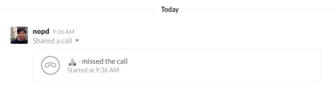 슬랙 협업 공간으로 돌아와보면 슬랙봇이 친절하게도 보이스 콜이 활성화 되었다고 말을 걸어줍니다. 관리자가 보이스 콜을 활성화 했다 하더라도 다른 팀원들은 모를 수 있으니 이에 대한 이야기를 해주라는 깨알같은 가이드에 눈물이 날 지경입니다. 설정이 완료되었으면 이제 실제로 통화 하는 방법을 살펴봐야겠죠? 일반적인 메세징 서비스가 그러하듯 통화는 결국 사용자간에 이루어지게 됩니다. 통화를 하고 싶은 상대방을 선택하고 “Call” 을 누르면 통화를 시도하게 됩니다.