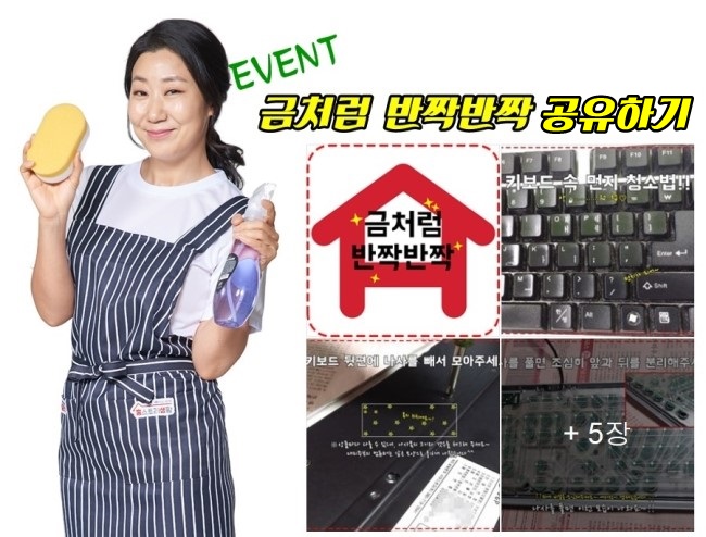 ‘대리주부’에서 제공하는 청소 방법 게시물 ‘금처럼 반짝반짝’ 게시물 공유 이벤트를 진행한다고 전했다. 이 콘텐츠는 대리주부가 7년동안 연구해온 홈매니저 교육 자료과 7,000명의 홈매니저를 통해 축적해온 노하우를 모아 고객에게 실질적인 청소 방법을 공유하고 있으며, 매주 금요일 마다 업데이트 된다.