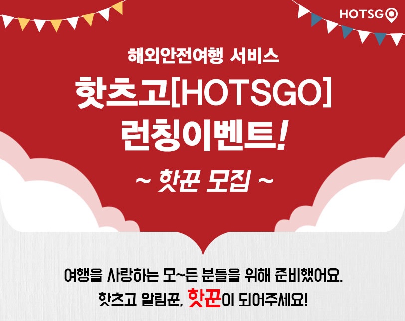 3월 21일부터 3월 31일까지 진행되며, 핫츠고를 홍보하는 총 15명에게 해외 필수관광지 티켓을 구매할 수 있는 3만원의 적립금을 제공한다. 이벤트 참여는 핫츠고 공식 페이스북 페이지에서 가능하다.