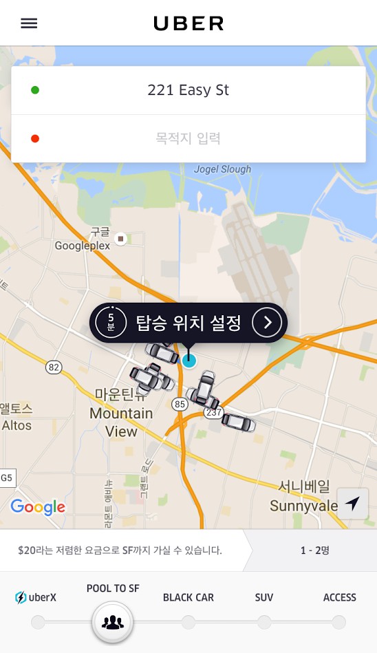 내가 실리콘밸리의 남쪽인 쿠퍼티노에 살던 2013년 당시에는 우버를 써보고 싶어도 쓸 수 없었다. 우버는 뉴욕이나 샌프란시스코 같은 대도시 시내에서만 되는 서비스였다. 외곽도시에서는 당연히 쓸 수 없다고 생각했다. 그런데 이번에 가서 써보니 달랐다.