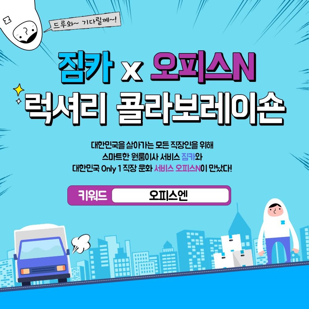 이사 O2O 스타트업 짐카와 대한민국 직장 문화 서비스 플랫폼 오피스N이, 함께 짐카를 이용하는 고객들에게 이사 비용 할인 및 다양한 상품이 제공되는 후기 이벤트를 3월 24일부터 5월 31일까지 약 2개월간 진행한다.