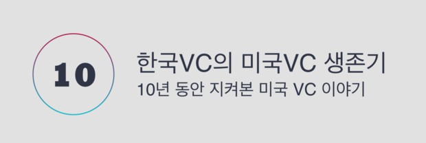 그래서 그는 자신의 10년간의 경험을 ‘한국VC의 미국VC 생존기’라는 제목으로 발표할 예정입니다.