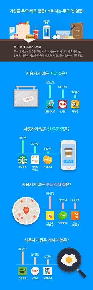 모바일 트랜드와 앱 랭킹을 제공하는 와이즈앱이 지난 3월 한 달 동안 스마트폰 푸드 앱 사용자 실태 조사 결과를 발표했다고 밝혔다.