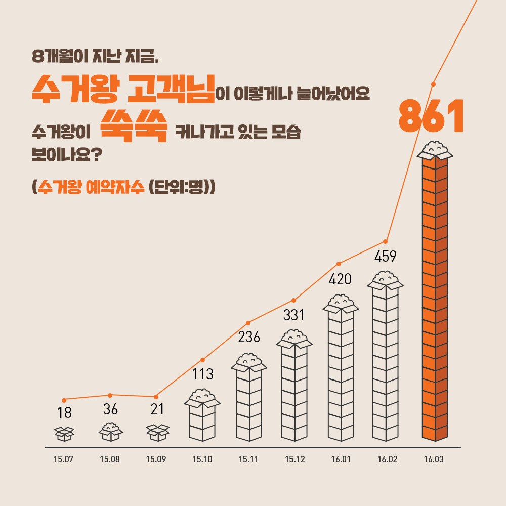 위버스에 따르면 수거왕 런칭 당시 월 예약 수 18건에서 올해 3월 기준 861건으로 늘어났다. 서비스 런청 이후 수거왕이 수거한 재활용품의 양은 8만 5,288킬로그램으로 그동안 이용자에게 지급한 금액으로 환산하면 약 2천 132만 원이다. 가장 많은 돈을 돌려 받은 지역은 서울시 종로구, 가장 많이 이용한 지역은 서울시 송파구로 나타났다.