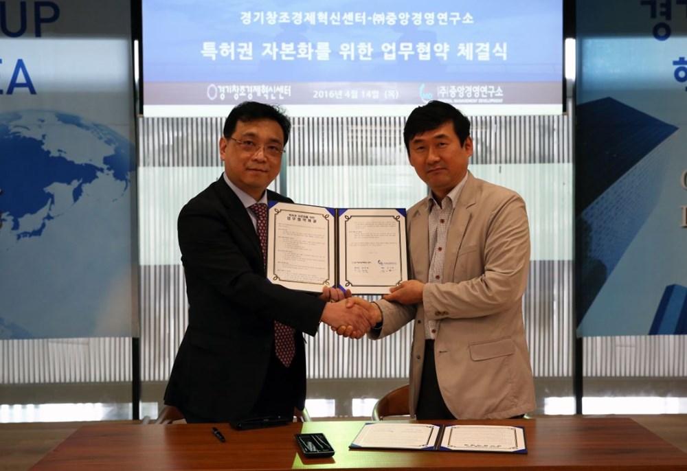 ▲ 왼쪽부터, 김고현 중앙경영연구소 대표, 경기창조경제혁신센터 주영범 창조사업본부장