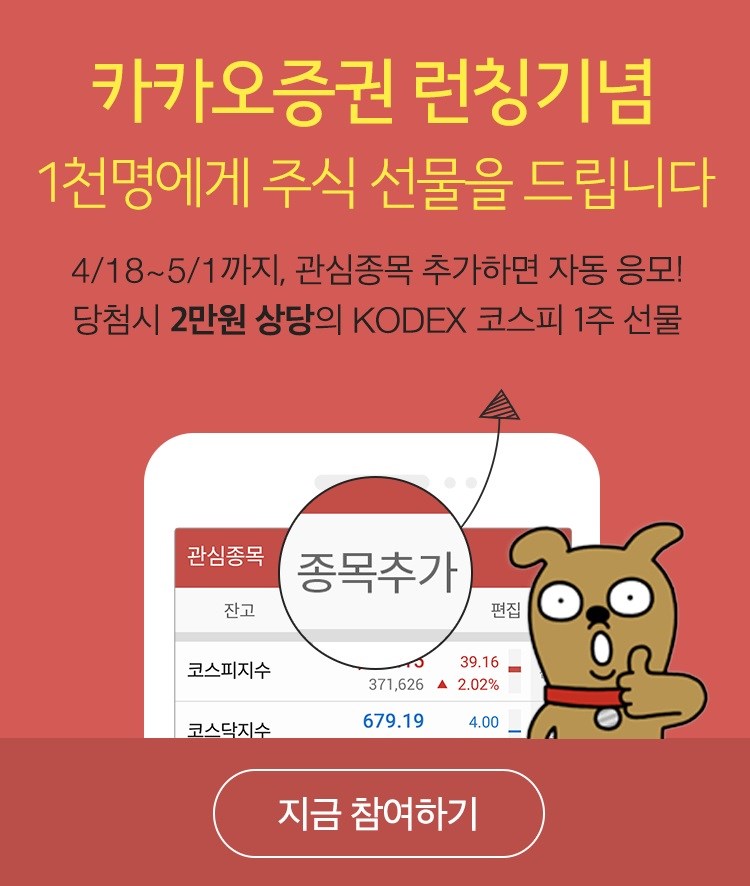 핀테크 전문기업 두나무가 기존 증권플러스의 리뉴얼 브랜드인 카카오증권 출시를 기념으로 총 1천명에게 2만원 상당의 코덱스(KODEX) 코스피 1주의 주식을 증정하는 이벤트를 연다고 밝혔다.