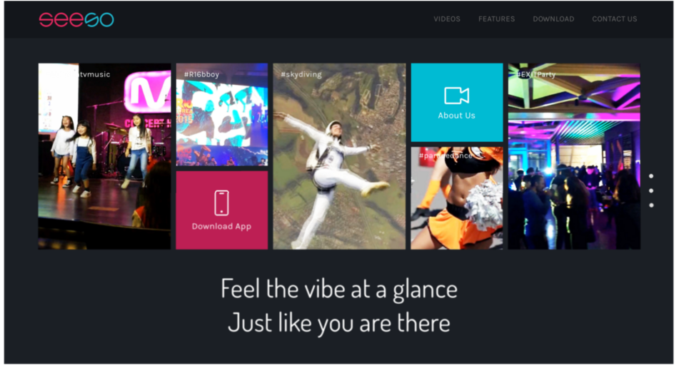 - 서비스 내용(iOS/Android): 넓은 이벤트 현장에서 사용자가 보는 시선으로 촬영한 짧은 길이의 동영상을 공유하는 서비스. 동일한 태그와 위치 인식으로 영상을 쉽게 모아 볼 수 있어, 현장의 생생함을 전달할 수 있음