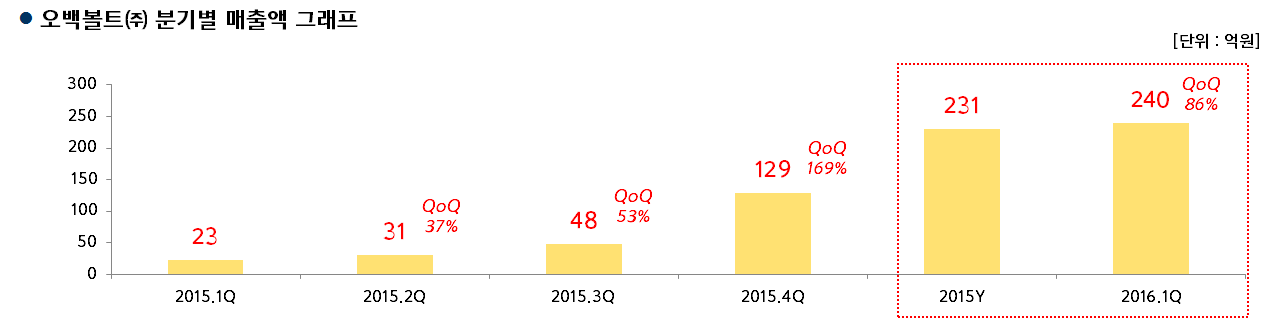 전용렬 최고재무책임자(CFO)는 “500V의 2016년 1분기 매출은 약 240억원으로 이미 2015년 총 매출을 넘어선 상태다.” 라며 “이런 급성장 추세로 보면 2016년 코넥스 상장은 물론 연말 코스닥 상장심사에도 큰 문제 없을 것”이라고 전했다.