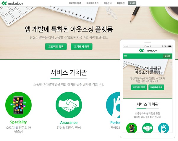 메이크바이는 앱 개발, 디자인이 필요한 고객에게 프리랜서를 직접 연결해주는 외주중개 서비스다. 빅데이터 분석에 기반을 둔 ‘자동견적시스템’으로 본인이 직접 대략적인 견적을 살펴볼 수 있다. 거품이 낀 가격을 사전에 제하는 장점을 가지고 있기 때문에 기존에 불투명하게 결정되던 외주 중개의 결점을 보완한 서비스라고 메이크바이 측은 설명했다.