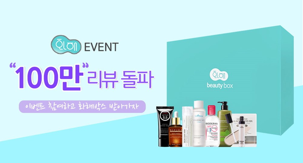 버드뷰의 ‘화해’가 리뷰 100만 돌파를 기념해 5천만 원 상당의 화장품을 증정하는 ‘화해 BOX’ 이벤트를 진행한다.