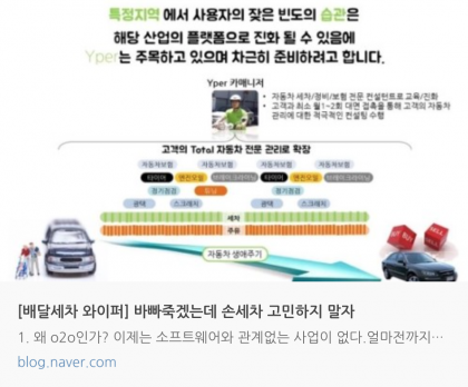 모비인사이드에서 공개한 ‘[인포그래픽] 한국 O2O의 모든것‘에서는 한국에서 대표적인 세차 부문 O2O기업으로 표기하고 있습니다.