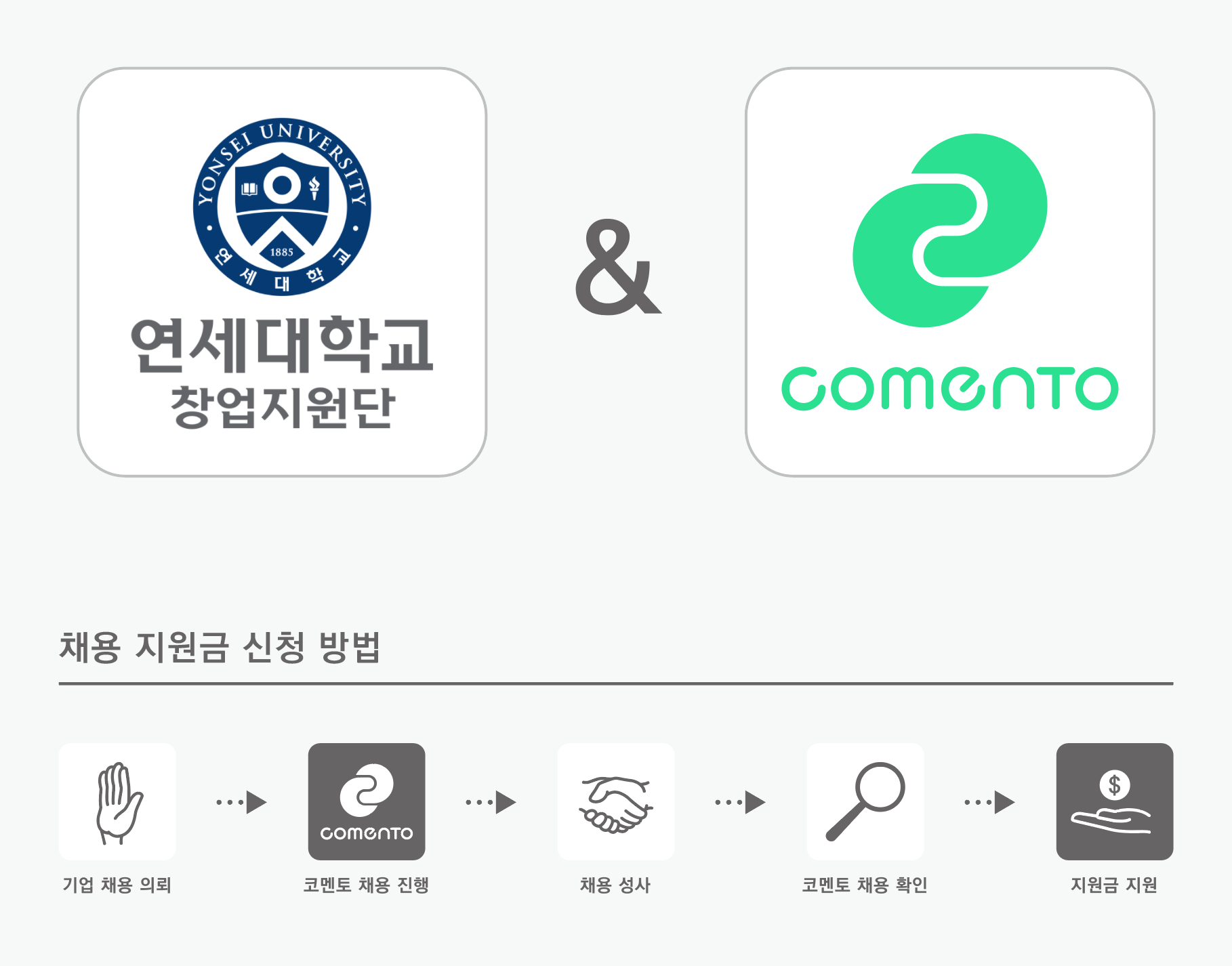 이번 MOU는 우수 인재 및 유망 스타트업들과의 네트워크를 보유한 연세대학교 창업지원단이 코멘토와 협력하여 유망 스타트업들이 우수 인재를 채용할 수 있도록 돕는 것이 목적이다. 또한 청년희망재단의 ‘신생 벤처기업 – 청년인재 매칭 사업’의 운영기관인 연세대학교 창업지원단이 채용 기업에 지원금을 제공하고있어 채용 기업은 우수 인재와 지원금을 동시에 얻을 수 있다. 이에 따라 코멘토가 운영 중인 코넥트 채용 을 통해 신입 사원을 채용하는 기업은 채용 인력당 6개월간 총 300만원의 지원금을 최대 2명까지 지원받을 수 있게 된다.
