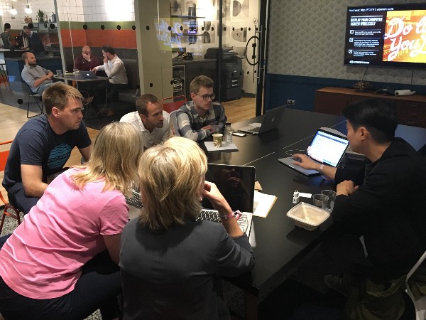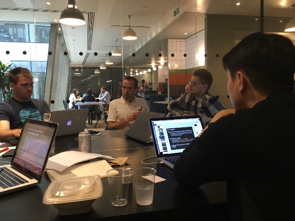 이번 사전 피칭은 런던에 있는 위워크에서 진행되었는데, 10층 건물 전체를 위워크가 다 사용하는 엄청난 곳이네요. 저희가 피드백 받는 바로 앞에 스카이스캐너, 다른 곳에는 BlaBlaCar 등이 입주해 있더군요. 사진 몇 장 투척합니다.