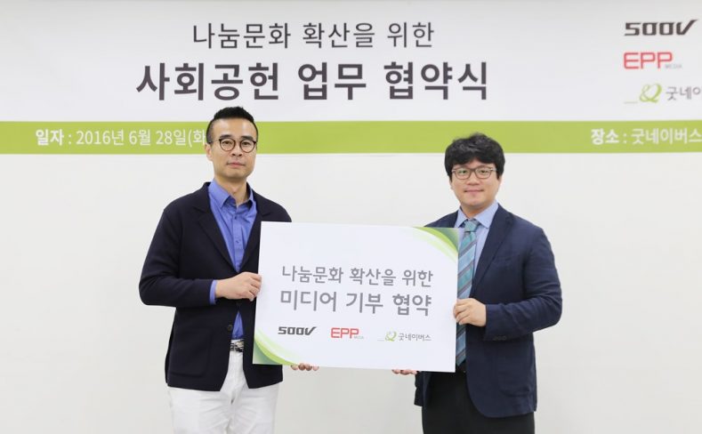 오백볼트의 자회사 이피피미디어가 보유한 서울 지하철 1, 3, 4호선 승강장 행선안내기인 SUB-TV(총 70개 역사에 1,299개 설치)에 굿네이버스의 다양한 활동을 담은 홍보영상을 송출, 지원하는 것이 협약의 주된 골자다.