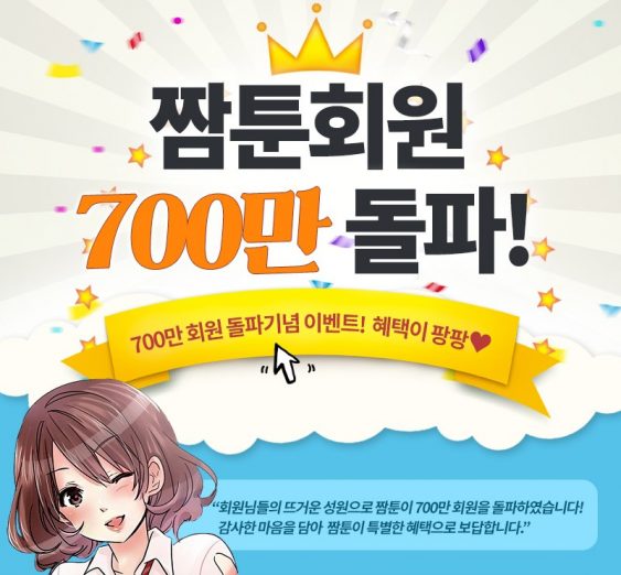 투믹스의 웹툰 플랫폼 짬툰이 출시 약 1년 2개월 만에 가입자 수 700만 명을 돌파한 기념으로 이벤트를 개최한다.