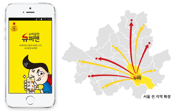 국내 슈퍼마켓 식료품 모바일 주문 및 배달 서비스 슈퍼갈땐슈퍼맨 이 서비스를 서울 전 지역으로 확장한다고 밝혔다.