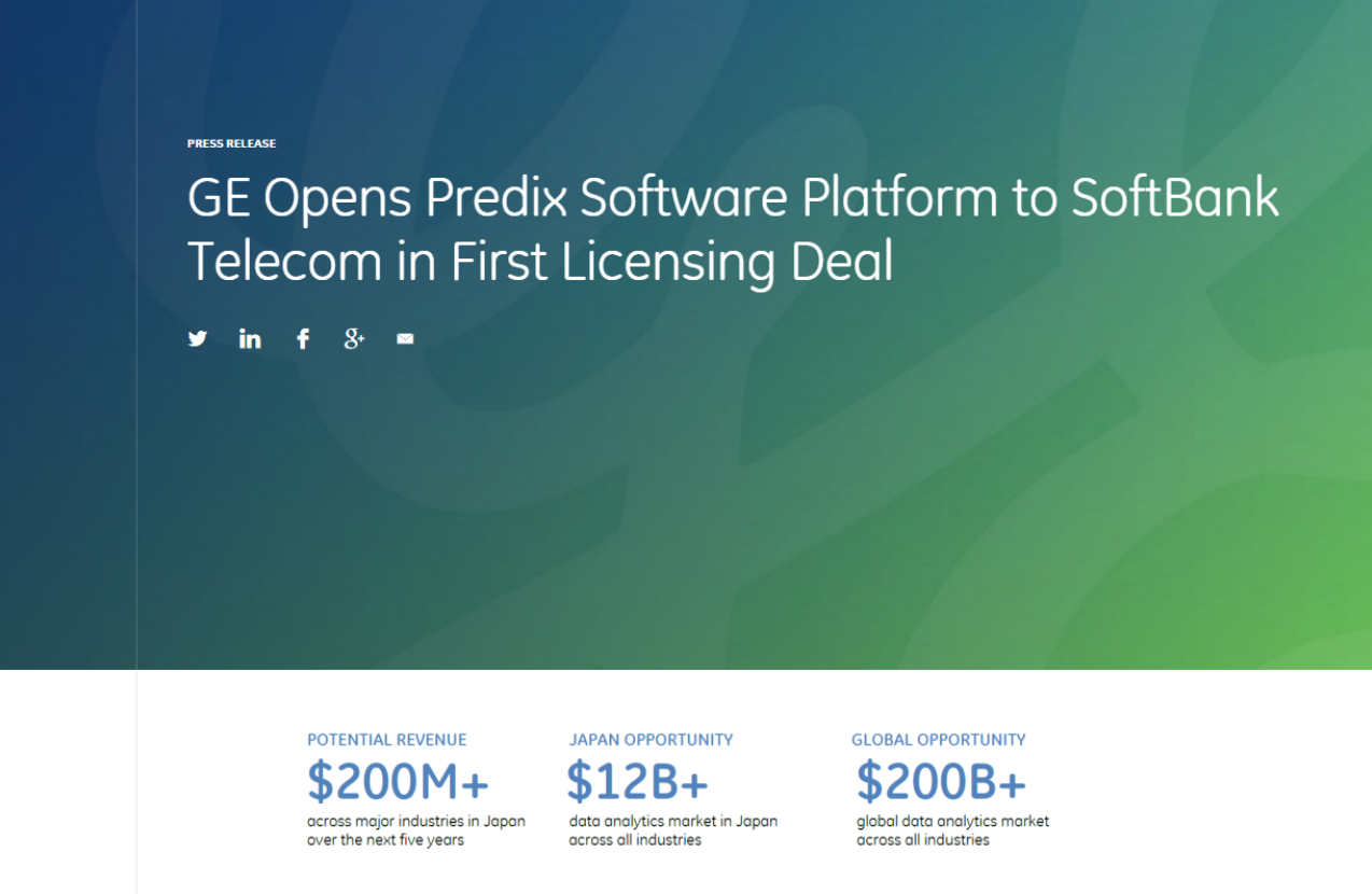 그것은 GE가 제공하는 Predix Cloud 플랫폼에 축적된 다양한 버티컬 B2B 산업영역의 패턴 데이터를 일본 Softbank Telecom이 확보한 로컬 B2B 현장데이터와 융합하여 일본 내 B2B Data Analytics 사업에 양사가 공동으로 진입하려는 의도라고 볼 수 있다. GE입장에서는 일본 로컬 산업인터넷 시장에 Softbank Telecom이 가진 B2B 영업채널을 활용해 손쉽게 진입할 수 있는 셈이다. Data Analytics의 장점을 앞세워, 제품 판매를 자연스럽게 유도하는 새로운 고객유치 방법이 셋업된 셈이다.