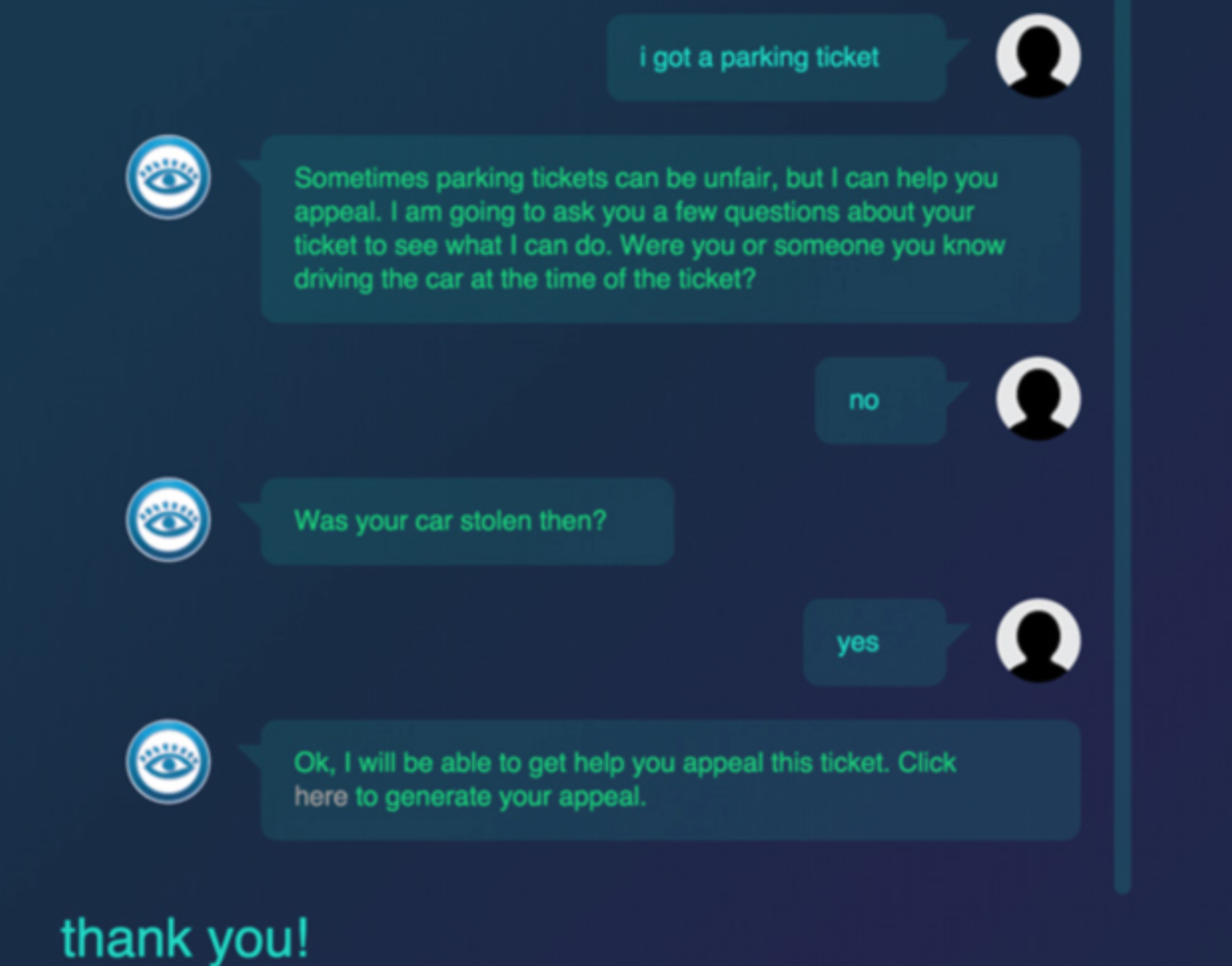 그래서 그는 주차티켓이 어떻게 해서 발부되는지를 알기 위해 수백개의 정부문서를 찾아서 읽었다. 심지어는 정보공개청구를 하기도 했다. 어느 정도 이해를 하게 된 그는 조심스럽게 항의서한을 직접 써서 당국에 보냈다. 그리고 티켓을 취소시키는데 성공했다. 나름 요령을 알게 된 그는 가족과 친구들의 위반티켓도 취소시키는 것을 도와주다가 더 많은 사람을 돕기 위해서는 인공지능봇으로 개발해야겠다는 생각을 하게 됐다.