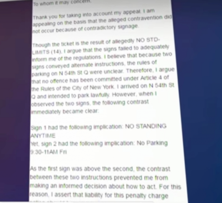 96년 런던태생인 그는 18세에 면허를 취득하고 차를 운전하기 시작했다. 그런데 주차위반티켓을 4번이나 받게 됐다. 부모님이 “이젠 네가 알아서 해라”라고 하며 더이상 벌금을 대신 내주는 것을 거부하자 그는 연구에 들어갔다. 쉬운 방법은 변호사를 써서 항의레터를 보내는 것이었는데 그는 변호사에게 비싼 돈을 주기 싫었다.