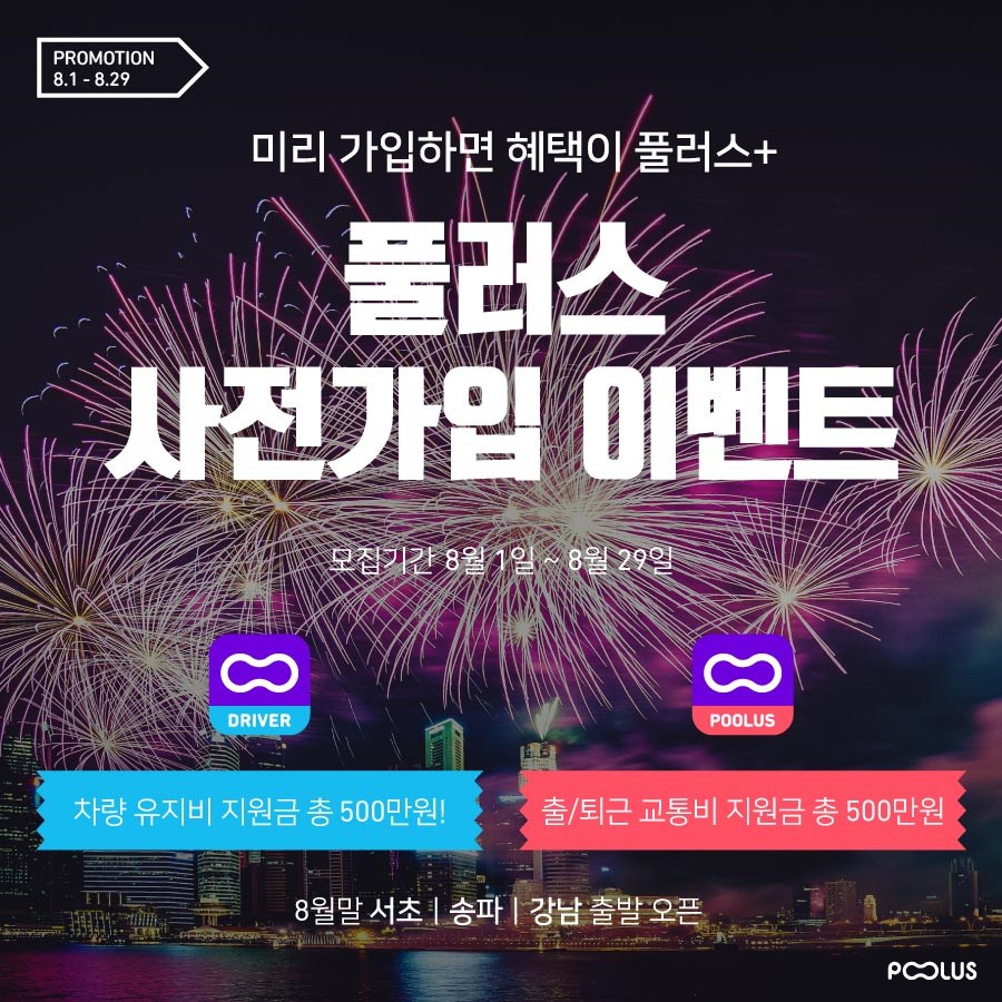 카풀 기반 라이드셰어링 서비스 풀러스가 8월 29일부터 서울 지역으로 출발지를 확대하고, 이를 기념하는 이벤트를 개최한다.