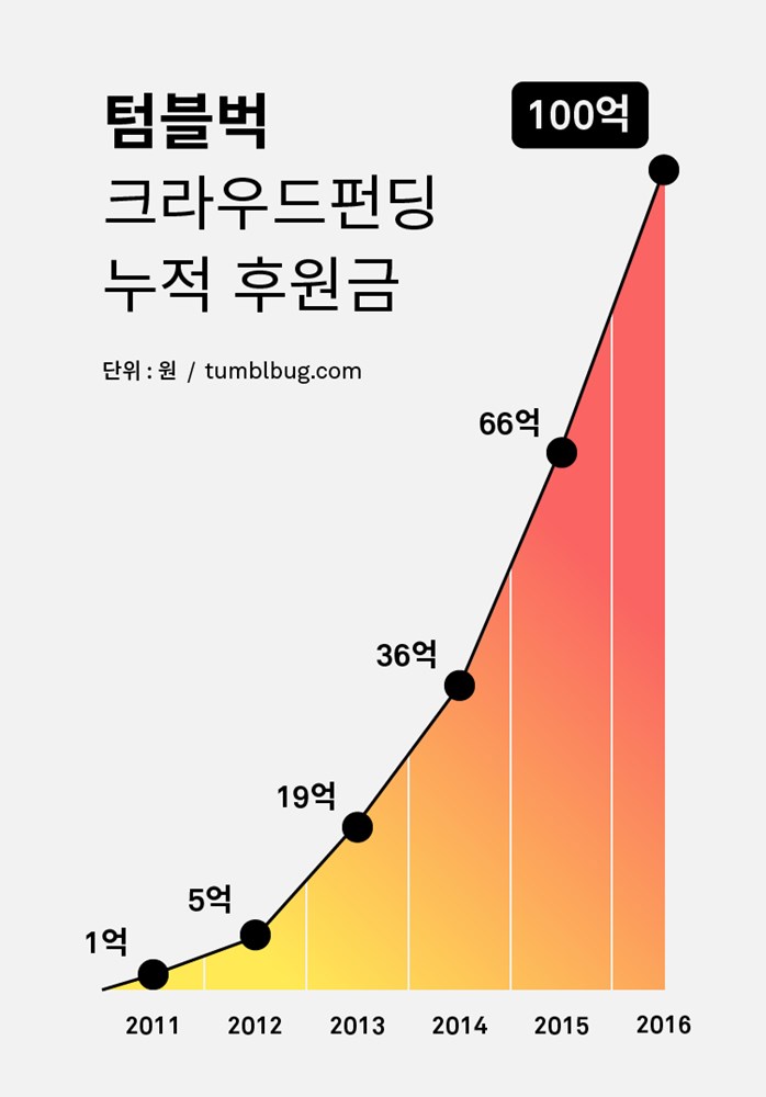 이번 누적 후원금액 100억 원은 텀블벅 설립(2011년) 이후 5년 동안 달성한 성과다.