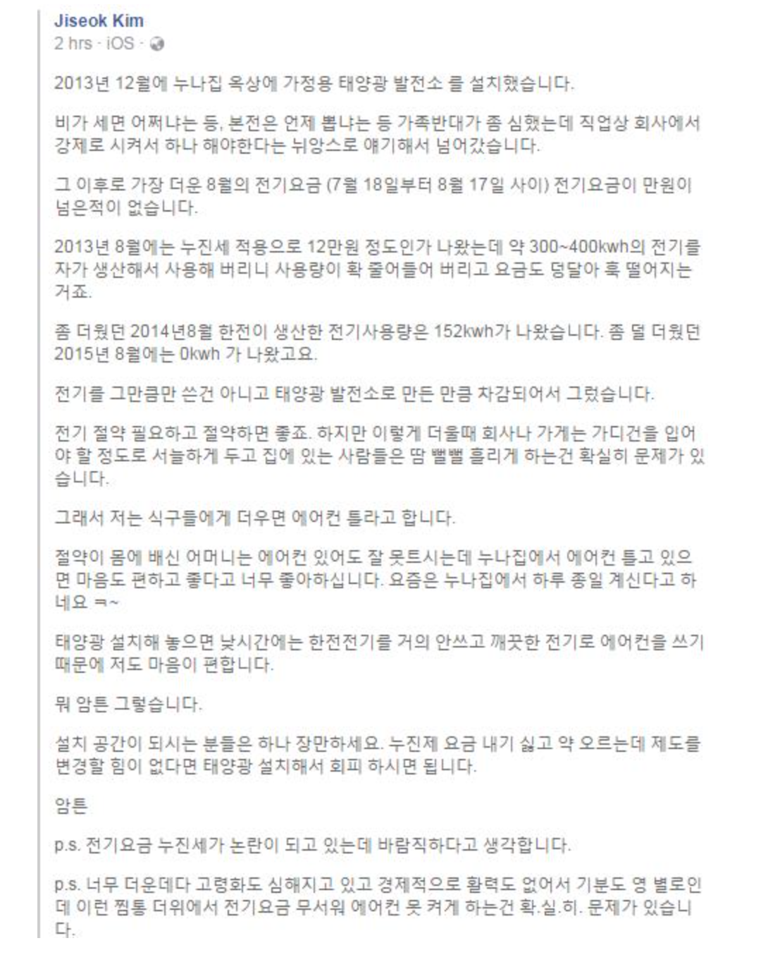 한국전력도 이번 누진세에 대한 이슈를 단순히 전기요금 인하에 대한 요구가 아닌 미래 전기산업 인프라에 대한 요구라고 생각해주셨으면 합니다.