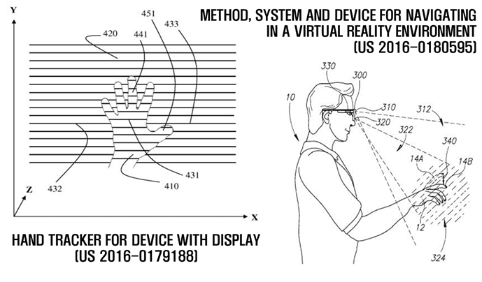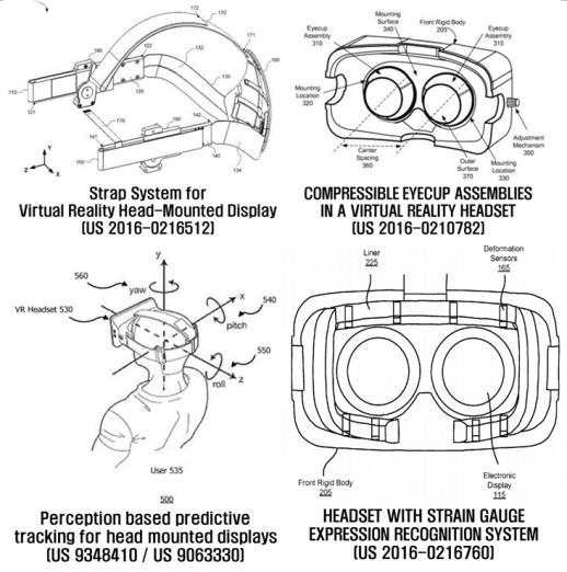 또한, 사용자에게 현실감 있는 가상영상을 제공하기 위한 기술들에 대한 특허 확보도 계속 중이다. 예를 들어, 각축방향으로 머리가 움직이는 각속도를 측정하여 레이턴시를미리 예측하는 기술에 대한 특허를 등록받았다(US 9348410 / US 9063330).또 장치의 얼굴접촉영역에 구비된 변형센서를 착용자의 표정 변화를 인식하여 영상을 생성하는 기술(US 2016-0216760)의 특허확보를 시도 중이다.현실공간으로부터 가상공간 내에 입력조작을 전달하기 위한 기술(예를 들어, 손가락 움직임을 인식하기 위한 다양한 기술)들도 출원했다. 현실에서의 일상적인 조작이 가상공간에도 전달되어 현실감 있는 VR 서비스를 제공하기 위해서다. 이 회사는 2014년 3월 페이스북에인수된 이후, 이스라엘의 PEBBLES, 미국의 VEGA VISTA의 VR 관련 특허를 양수하여서, 특허 포트폴리오를 더욱 넓혀가고 있다.