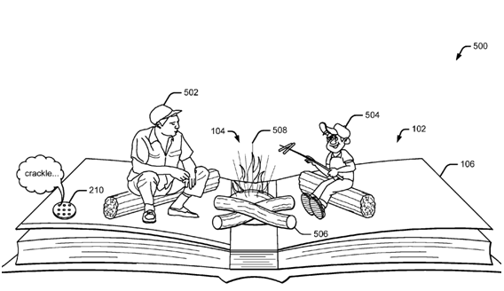 2010년에 SKT에서 제공하였던 ‘오브제’ 서비스는 건물이라는 현실대상에 건물 내 매장정보라는 가상대상을 결합하는 서비스였다. 또 구글에서특허출원한‘Storytelling Device’는 책이라는 현실의 물체와 책의 각 페이지 내용에 상응하는 컨텐츠라는 가상대상을 결합하는 장치/서비스다.(그림 4) 또한, 스크린골프는 현실세계의 여러 대상 중에서도 골프라는 특정 스포츠를 가상으로 구현하는 서비스에 해당한다. 이런 것들은 지식재산권 측면에서 별도의 비즈니스모델로 인정받을 수 있다. 현실대상과 가상대상의 새로운 연결관계를 가진 AR 서비스나, 기존에 시도되지 않은 현실대상을 가상공간 상에 생성하는 VR 서비스 자체가 새로운 것이면, 해당 서비스 자체가 특허의 대상이 될 수 있는 것이다.