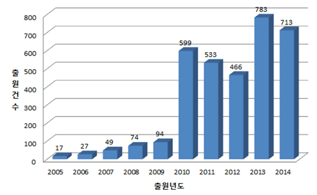 AR분야의 특허출원은 2010년부터 급증했다. 새로운 디바이스인 스마트폰이 등장하였기 때문에 나타난 현상이다. 새로운 하드웨어가 등장하면 이를 이용한 다양한 새로운 소프트웨어, 새로운 서비스에 대한 특허출원이 따라오게 된다.