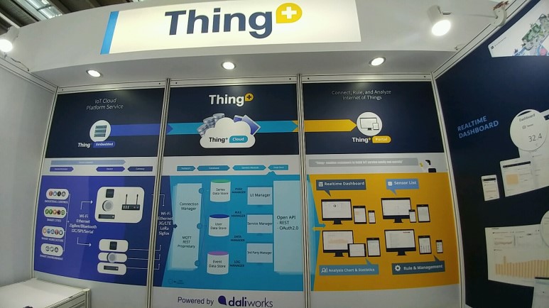 KOTRA 한국관에 위치한 ‘씽플러스’는 한국 스타트업 daliworks 에서 제공하는 사물인터넷 플랫폼입니다. 중국에서 알리바바의 클라우드 서비스인 알리클라우드와 연동하여, 중국 내에서 서비스를 제공하고 있다고 합니다. 달리웍스 서비스는 참조 ^^