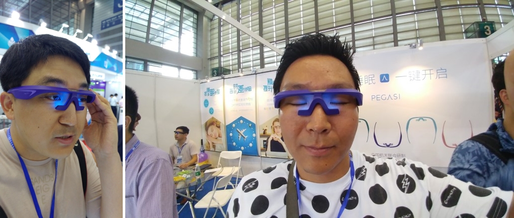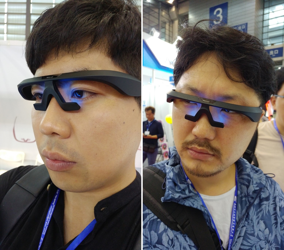 C관 들어서자마자 보인 ‘스마트 글라스’ 업체. 정말 특이하게 생겼습니다. 페가시 PEGASI라는 업체인데, 신비한 구조의 LED 라이팅을 가진 웨어러블 디바이스 회사입니다. 아래 사진을 보고 기능을 예상하실 수 있다면, 정말 추정을 잘하시는 분일 것 같습니다. 대체 무엇을 하는 디바이스일까요?