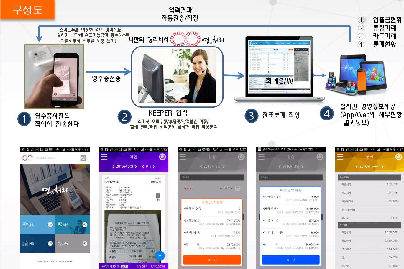영처리는 영수증 처리부터 기장, 신고대리, 각종 민원증명까지 대신해주는 스마트 경리 비서 서비스다.