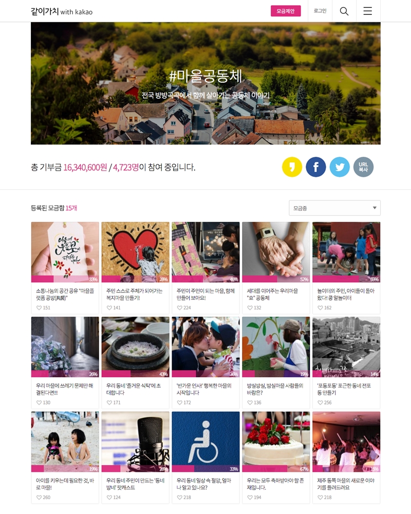 같이가치 위드 카카오의 ‘마을공동체 캠페인’ 후원에 관심 있는 사람은 공식 웹사이트에서 더욱 자세한 정보를 확인할 수 있다.