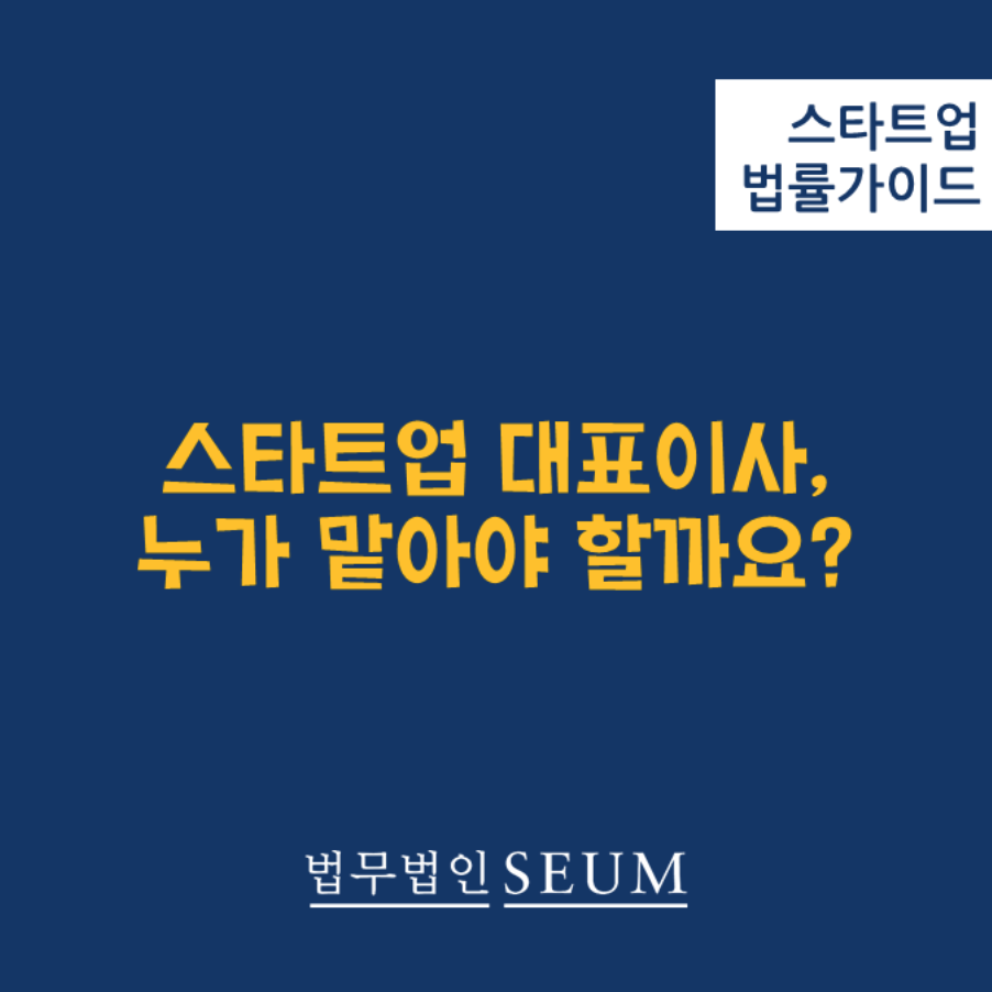 나이와 역할이 비슷한 여러 명이 공동으로 스타트업을 창업하는 경우, 누구를 대표이사로 선임해야 하는지 많이 고민합니다. 이번 글에서는 대표이사의 법률상 의미를 간단하게 살펴보고, 법률상 의미에 비추어 누구를 대표이사로 선임하면 좋을지 알아보도록 하겠습니다.