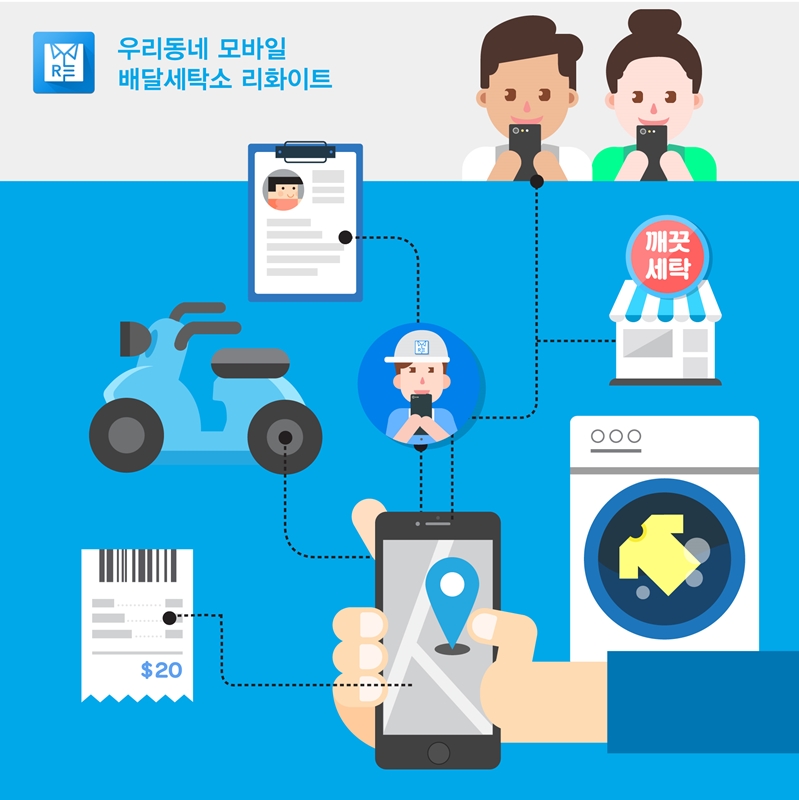 리화이트는 세탁 소상공인이면 누구나 무료로 사용할 수 있는 세탁 통합관리솔루션 ‘리화이트 샵플러스(SHOP+) 및 원하는 시간에 세탁 수거배달 서비스를 받을 수 있는 모바일 주문 플랫폼 ‘리화이트’를 서비스하고 있다.