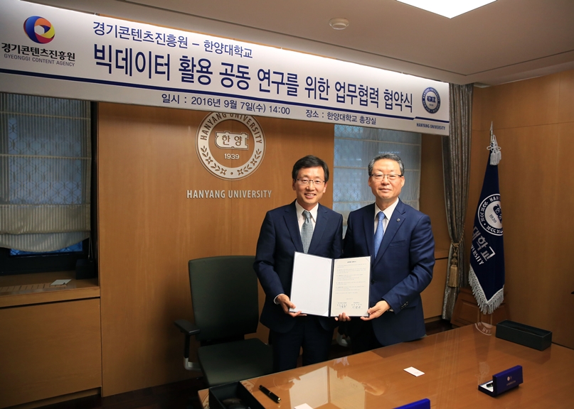 경기콘텐츠진흥원과 한양대학교는 7일 ‘빅데이터 활용 공동연구 및 오픈랩 실습’을 위한 업무협약을 체결했다고 밝혔다.