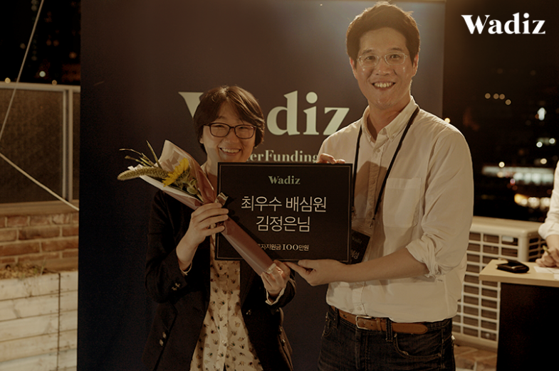 이번 시상식에서 최우수 배심원으로 선정된 충북창조경제혁신센터의 김정은 선임연구원은 “와디즈 배심원으로 활동하면서 각 분야의 전문가와 함께 크라우드펀딩 생태계에 기여하고 있는 것 같아 뿌듯하다”며 “앞으로도 양질의 피드백을 통해 기업과 투자자 사이에서 다리 역할을 하고 싶다”고 소감을 밝혔다.