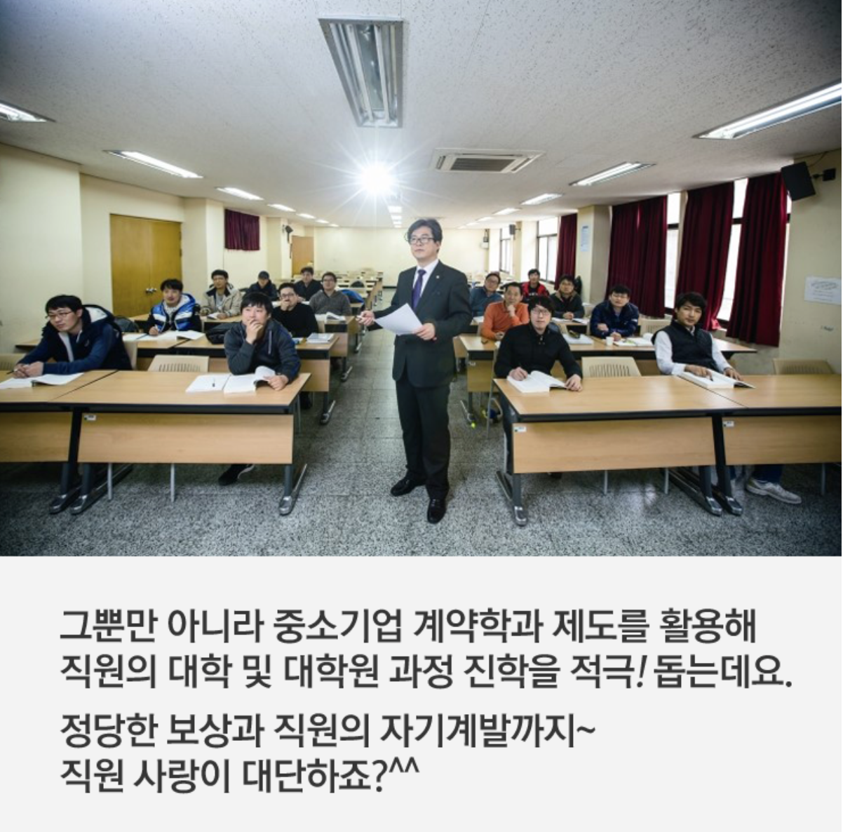 배움을 원하는 직원에겐 아낌없이 대학원 진학을 지원하는 중소기업이 있습니다.