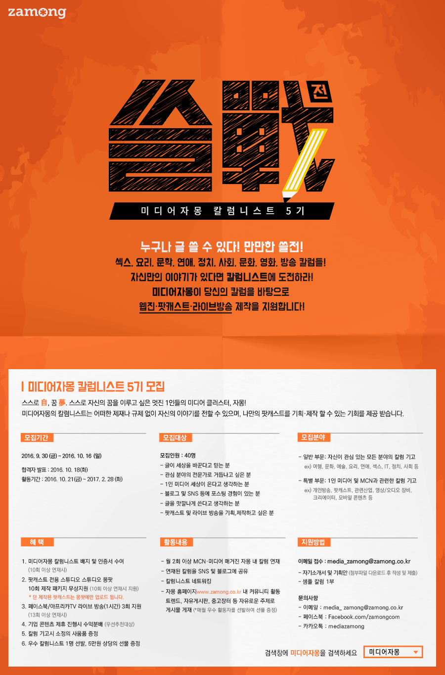 이번 칼럼니스트 모집은 전방위로 확대되고 있는 1인 미디어의 영향력에 따라 글쓰기에 관심 있는 일반인들에게 새로운 창작의 기회를 제공하고자 마련됐다.