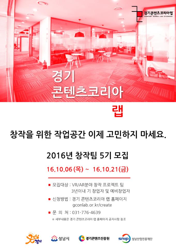 경기콘텐츠진흥원은 문화콘텐츠 창작자 육성과 창업 활성화를 위해 설립한 경기 콘텐츠코리아 랩(이하 경기콘랩)의 입주 창작팀을 오는 21일까지 모집한다고 밝혔다.