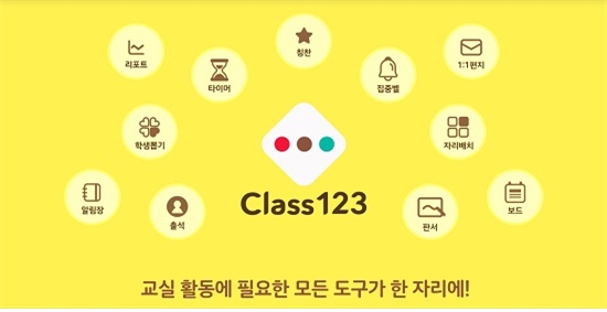 A. 학급경영도구가 일반인들에게 다소 생소할 수 있는 개념이긴 한데 쉽게 말해 학급을 운영하고 경영해나가는 데 필요한 도구를 말합니다. 선생님은 교실의 리더로서 학생과 학부모님을 함께 이끌어 나가야 할 필요가 있는데, 학생과 학부모 그리고 선생님 모두가 교육현장에서 쉽게 활용할 수 있는 종합적인 온라인 시스템이 바로 ‘Class 123’입니다. 이 시스템에는 자리 뽑기, 타이머, 발표자 뽑기, 판서하기 등의 기능이 탑재되어 있습니다.