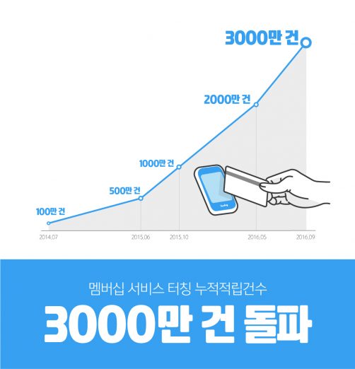 터치웍스는 매장에서 고객들이 멤버십 서비스 터칭(Touching)을 이용해 적립한 누적 건수가 3천만 건을 넘어섰다고 밝혔다. 이는 지난 5월 2천만 건을 돌파한 데 이어 4개월 만에 달성한 성과다.