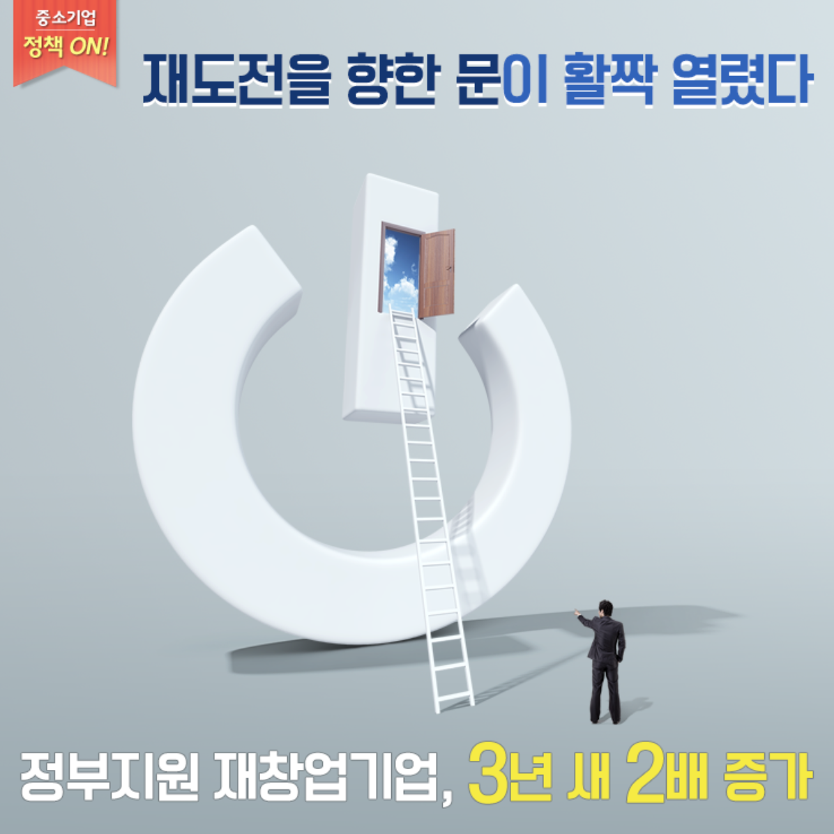 정부는 앞으로도 성실한 실패를 용인하고 재기를 북돋아 주는 재도전 환경 조성을 위해 재정적 지원을 확대하고 관련 제도를 꾸준히 개선해 나갈 예정이랍니다.