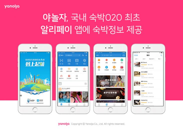 김종윤 야놀자 좋은숙박 총괄 부대표는 “이번 알리페이와의 제휴는 중국 관광객들에게는 국내 중소형 숙박시설을 보다 쉽고 편리하게 이용하도록 하고, 야놀자 제휴점은 보다 많은 고객들에게 양질의 숙박 서비스를 제공할 수 있도록 돕기 위한 것”이라며 “앞으로도 O2O 선도기업으로써 해외 유수의 서비스들과 협력해 외국인 관광 시장 활성화와 질적 발전에 이바지할 것”이라고 말했다.