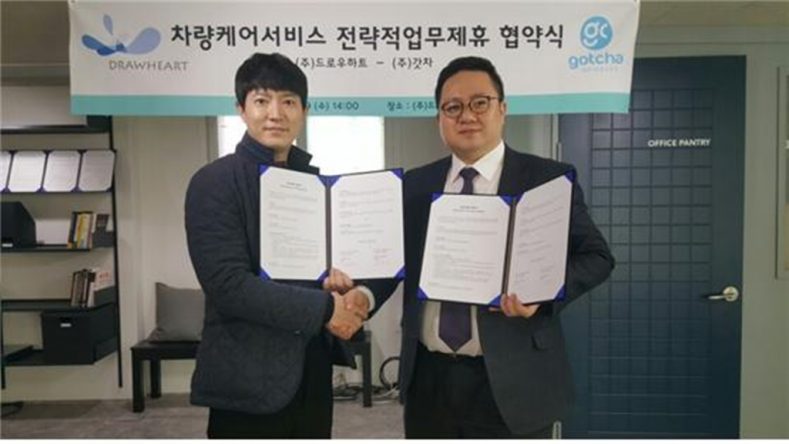 차량 토탈케어 스타트업 드로우하트와 멤버십 출장 세차 서비스 갓차가 ‘부산, 경남 지역 차량 케어 O2O 서비스 공동 운영 및 개발’을 위한 전략적 제휴를 체결했다.