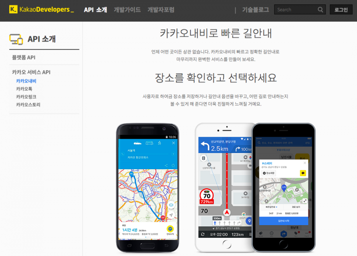 카카오내비 오픈 API는 카카오 개발자 홈페이지에서 확인할 수 있다.