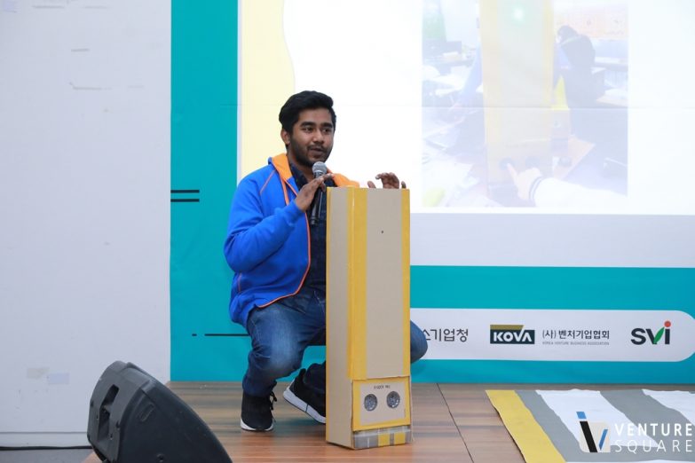 첫 번째 발표는 IoT 헬스케어 매트를 선보인 두바이 팀이 맡았다. 이들이 선보인 제품은 열풍 방식 온열 매트로 기존 전기장판과 온수 매트에서 발생할 수 있는 전자파, 누전 등의 문제를 해결한 제품이다. 스마트폰을 활용한 온도 조절은 물론, 함께 달린 가습기를 활용해 적정한 습도까지 조절할 수 있다. 두바이 팀은 ‘공기를 이용하므로, 아로마, 피톤치드 등 건강에 이로는 첨가물을 추가하는 것이 다음 계획’이라 밝혔다.