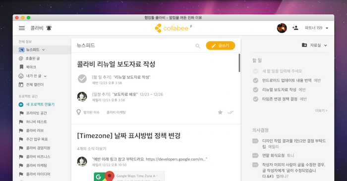 협업툴 콜라비가 사용자 편의성을 대폭 강화한 리뉴얼 버전을 오픈했다.
