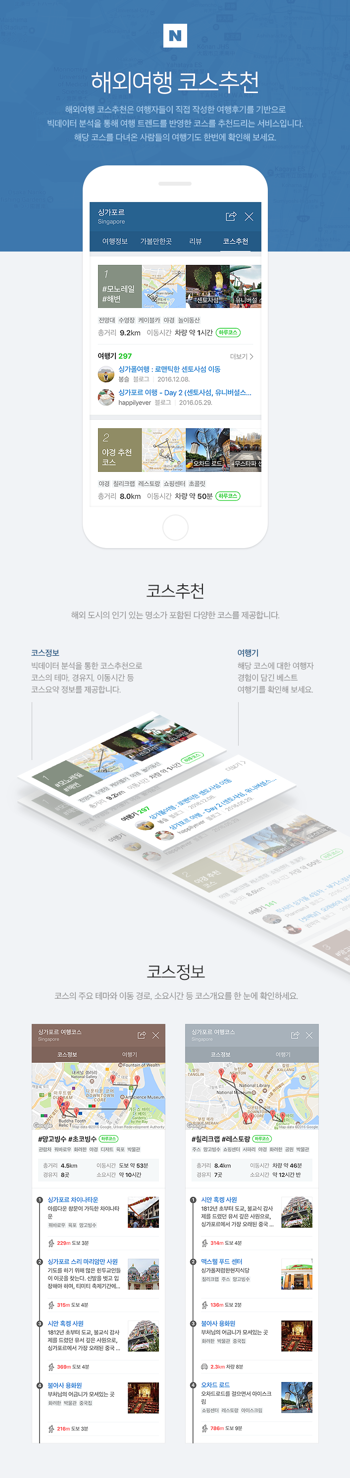 특히, 이번 해외여행 코스추천은 최근 2년 동안 네이버를 통해 누적된 1,220만여 건의 양질의 여행 관련 데이터를 분석해 ▲코스의 테마, 경유지, 총거리, 이동시간 등을 담은 ‘코스정보’ ▲해당 코스에 대한 생생한 이용자 리뷰를 확인할 수 있는 ‘여행기’를 제공한다.