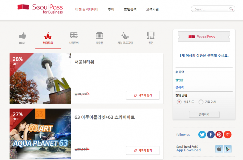 또한, 지난해부터 서울시 산하 관광마케팅 전담 기구인 서울관광마케팅㈜과 함께 외국인 관광객대상 관광 패스 ‘디스커버 서울 패스(Discover Seoul Pass)’를 출시해 운영하고 있다. ‘디스커버 서울패스’는 서울 시내 고궁, 한류체험관, 미술관 등 16개 유료 관광지 입장도 가능하고, 교통카드로도 쓸 수 있는 외국인 관광객 전용 1일 관광 패스카드 서비스이다.